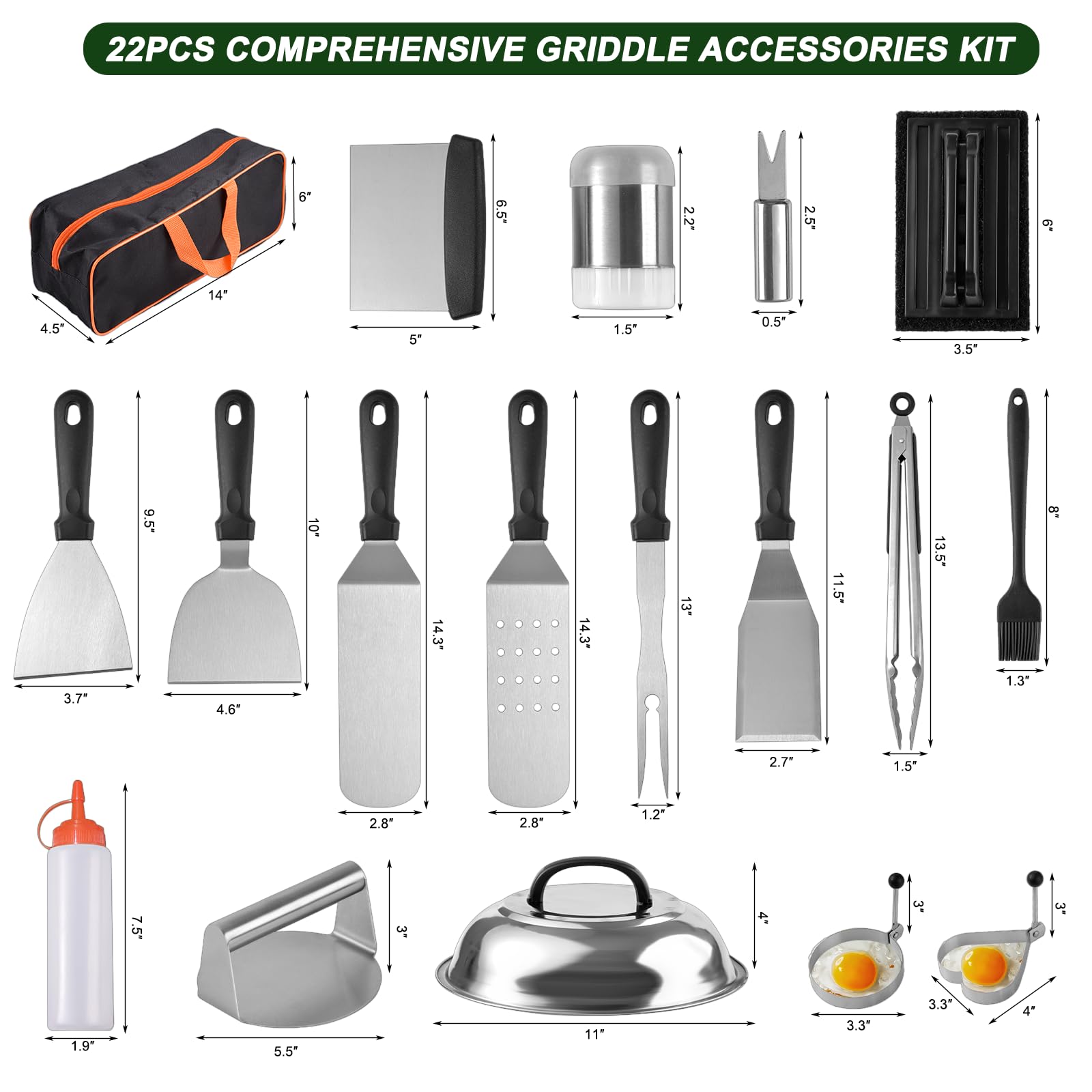 22PCS Blackstone Griddle Accessories, Flat Top Grill Accessories for Blackstone and Camp Chef, Griddle Spatula Set with Metal Spatula, Enlarged Spatulas, Basting Cover, Scraper for Outdoor Barbecue