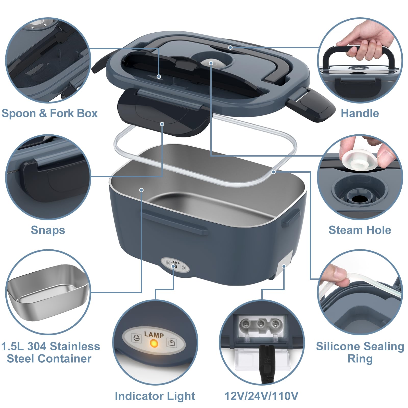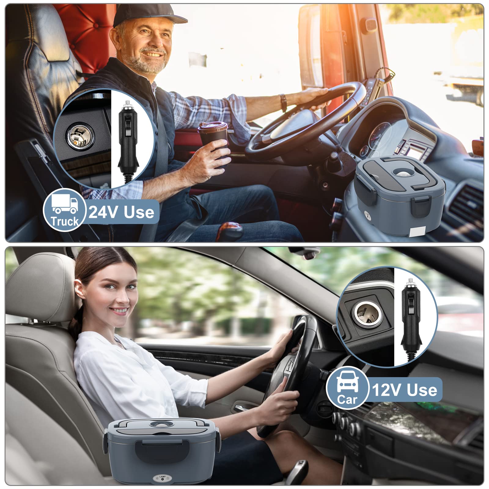 - 3-in-1 Heated Lunch Box: The WisaKey electric lunch box food heater features three voltage settings, catering to different power sources. Use 12V when in the car, 24V for trucks, and 110V for homes. This high-quality and energy-efficient food warmer lunch box keeps your lunch hot while you're on the move.
